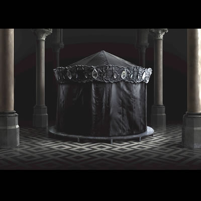 materiaal staal, hout, polyester, zeildoek en spiegel